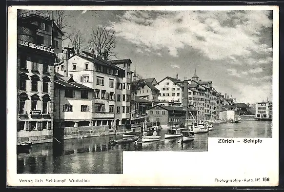 AK Zürich, Schipfe-Partie vom Wasser aus