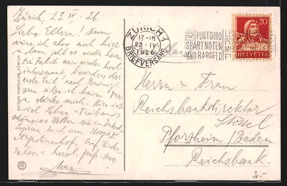 gelaufen 1926, Stempelspur, guter Zustand
