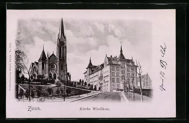 AK Zürich, Strassenpartie an der Kirche Wiedikon