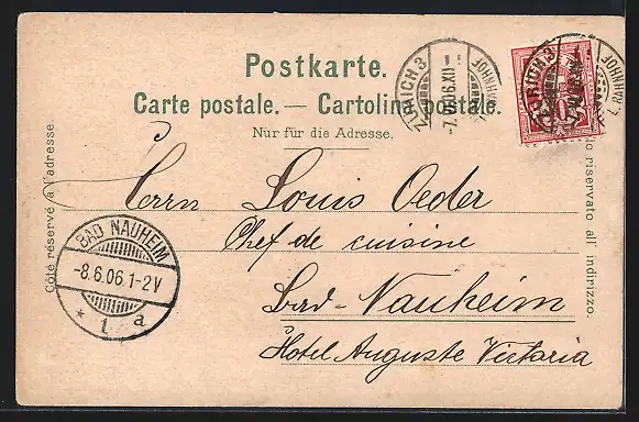 gelaufen 1906, kleiner Einriss re. oben, guter Zustand