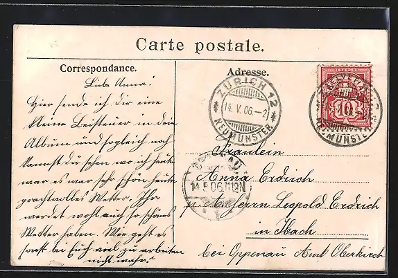 alte Ansichtskarte, gelaufen 1906, guter Zustand