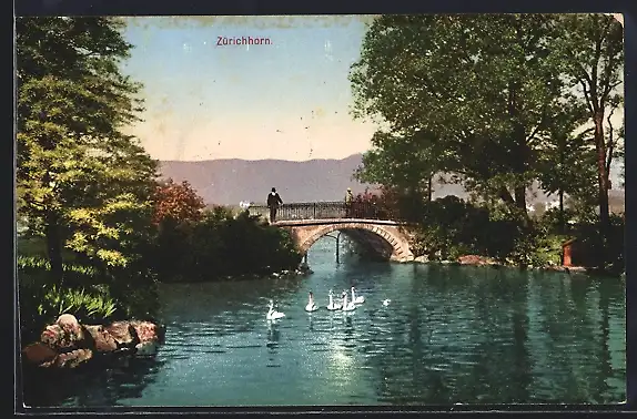 AK Zürichhorn, Idylle am Schwanenteich an der Promenade