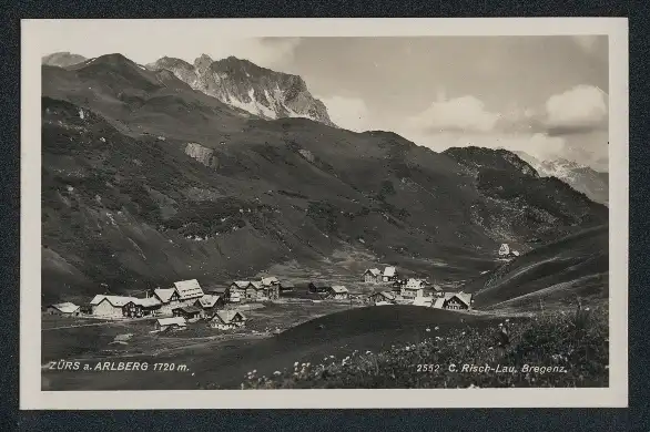 AK Zürs a. Arlberg, Ortsansicht vom Berg aus