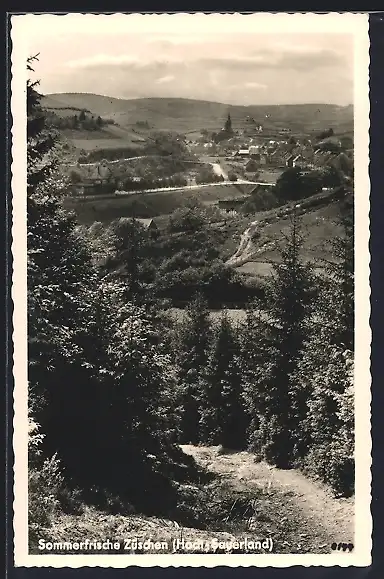 AK Züschen / Hochsauerland, Panorama mit Strassenpartie