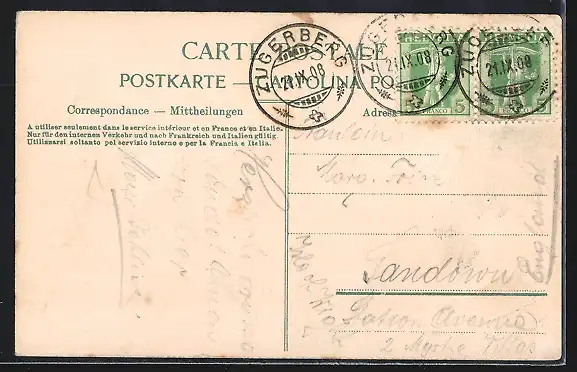 alte Ansichtskarte, gelaufen 1908, guter Zustand
