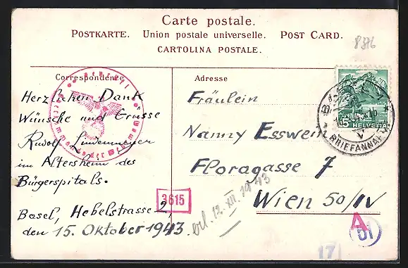 alte Ansichtskarte, gelaufen 1943, guter Zustand