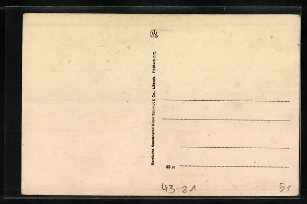 Personenbezogene Daten auf der Rückseite der Karte wurden durch blauen Textmarker unkenntlich gemacht. Die blauen Stellen sind auf die Vorderseite durchgeweicht und wirken sich negativ auf das Postkartenfoto aus