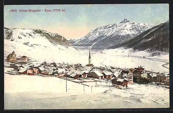 AK Zuoz /Unter-Engadin, Teilansicht im Schnee