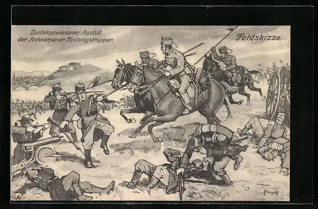 AK Zurückgewiesener Ausfall der Antwerpener Festungstruppen, Husaren