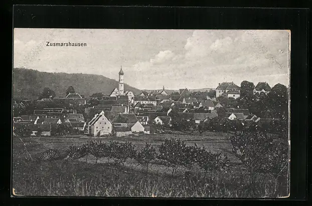 AK Zusmarshausen, Ortsansicht mit Kirchturm