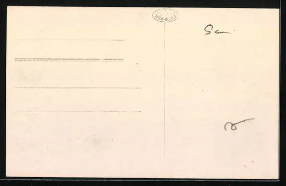 Personenbezogene Daten auf der Rückseite der Karte wurden durch blauen Textmarker unkenntlich gemacht. Die blauen Stellen sind auf die Vorderseite durchgeweicht und wirken sich negativ auf das Postkartenfoto aus