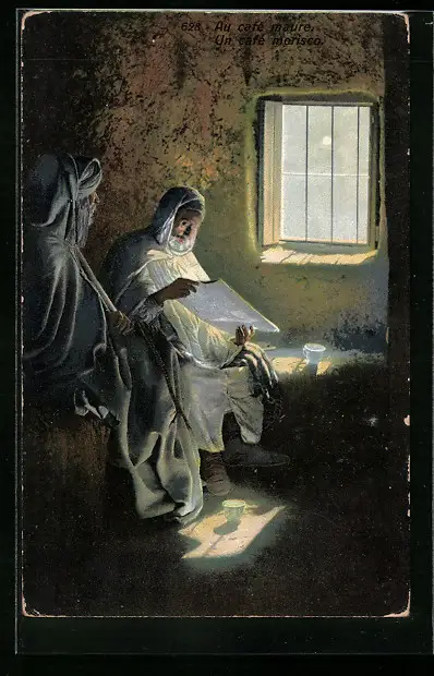 AK Zwei Araber mit Zeitung am Fenster, arabische Volkstypen