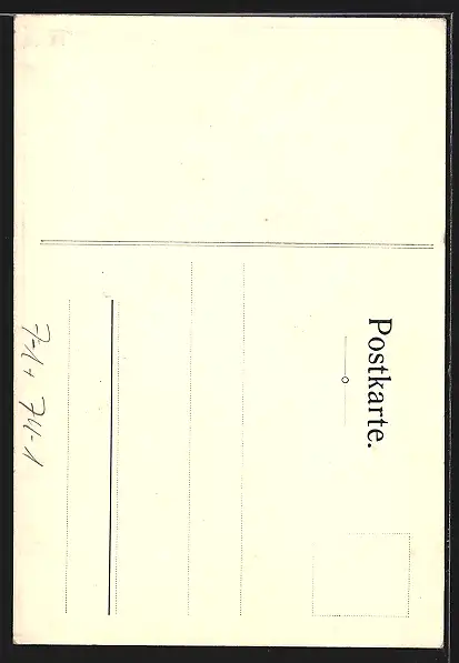 Personenbezogene Daten auf der Rückseite der Karte wurden durch blauen Textmarker unkenntlich gemacht. Die blauen Stellen sind auf die Vorderseite durchgeweicht und wirken sich negativ auf das Postkartenfoto aus