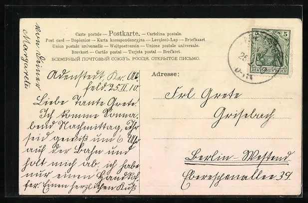 alte Ansichtskarte, gelaufen 1910, guter Zustand