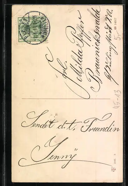 alte Ansichtskarte, gelaufen 1911, Eckknick re. oben, Stempelspur, guter Zustand