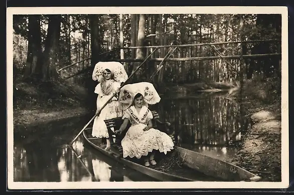 AK Zwei Frauen in Spreewälder Tracht im Boot