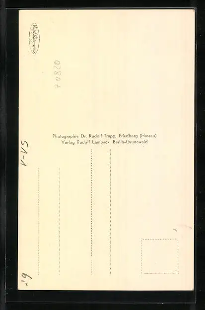 Personenbezogene Daten auf der Rückseite der Karte wurden durch blauen Textmarker unkenntlich gemacht. Die blauen Stellen sind auf die Vorderseite durchgeweicht und wirken sich negativ auf das Postkartenfoto aus