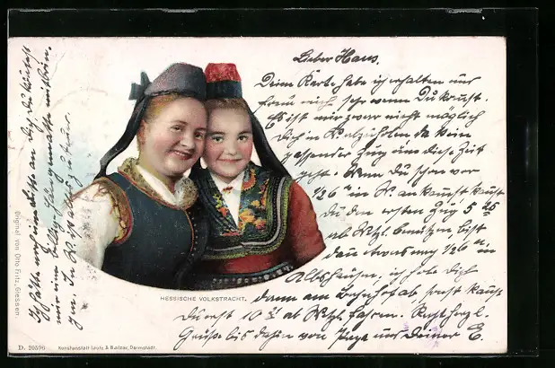 AK Zwei Frauen in hessischer Volkstracht