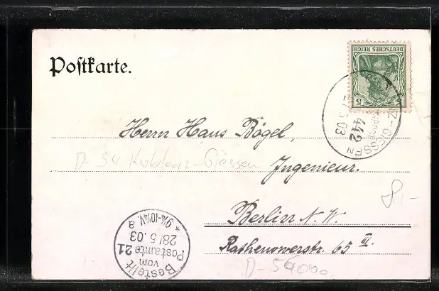 alte Ansichtskarte, gelaufen 1903, Bugspur li. oben, minimale Einrisse li. mittig, guter Zustand