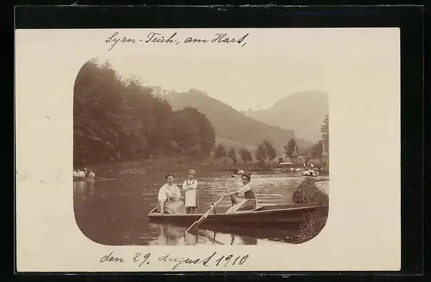 AK Zwei Frauen mit einem Kind im Ruderboot