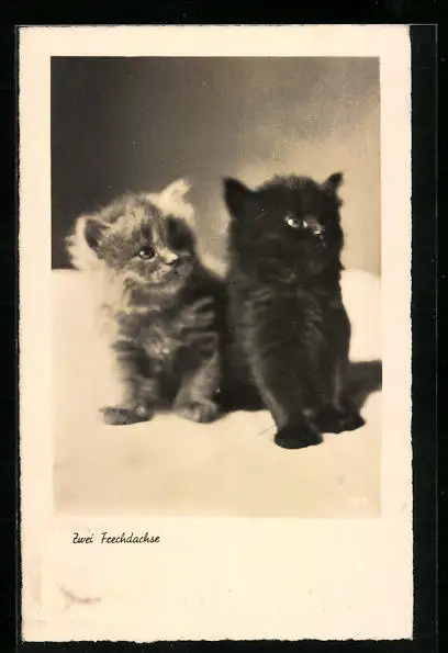 AK Zwei Frechdachse, Katzenwelpen