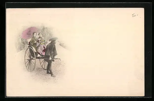 AK Zwei Geishas werden in einer Rikscha gezogen