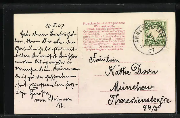 alte Ansichtskarte, gelaufen 1907, Stempelspur, guter Zustand