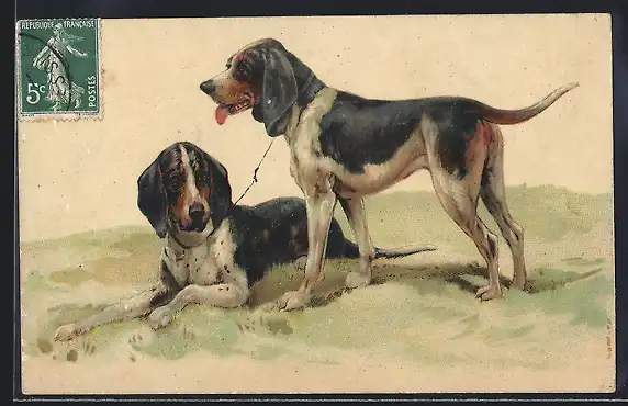 AK Zwei Jagdhunde auf einer Wiese