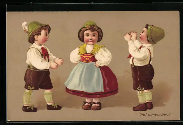 AK Zwei Jungen umwerben Mädchen in niederländischer Tracht