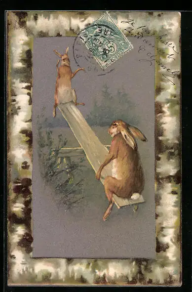 AK Zwei Kaninchen auf einer Wippe