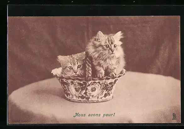 AK Zwei Katzen sitzen in einem Porzellankorb