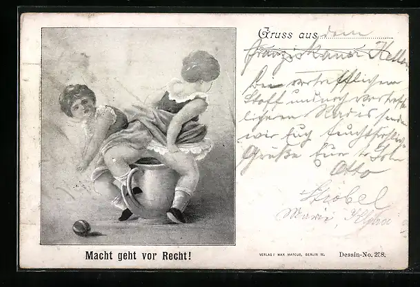 AK Zwei Mädchen auf einem Nachttopf, Toilettenhumor