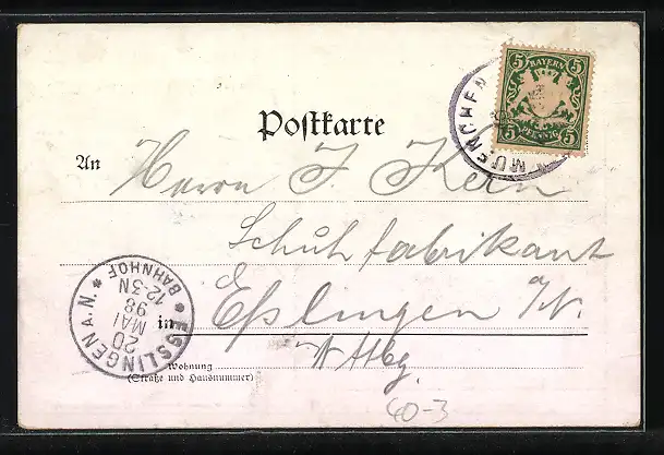 alte Ansichtskarte, gelaufen 1898, guter Zustand