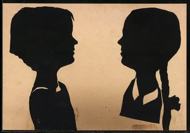 AK Zwei Mädchen im Profil, Scherenschnitt