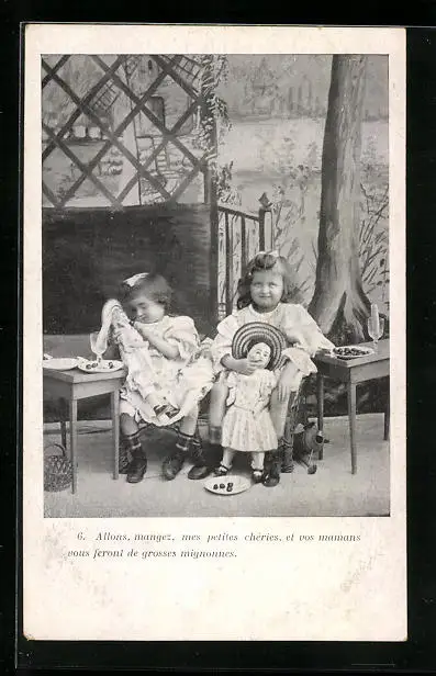 AK Zwei Mädchen spielen mit ihren zwei Puppen