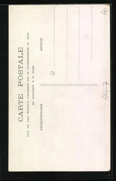 Personenbezogene Daten auf der Rückseite der Karte wurden durch blauen Textmarker unkenntlich gemacht. Die blauen Stellen sind auf die Vorderseite durchgeweicht und wirken sich negativ auf das Postkartenfoto aus