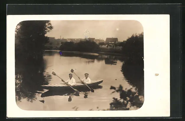 AK Zwei Männer im Ruderboot auf dem Wasser