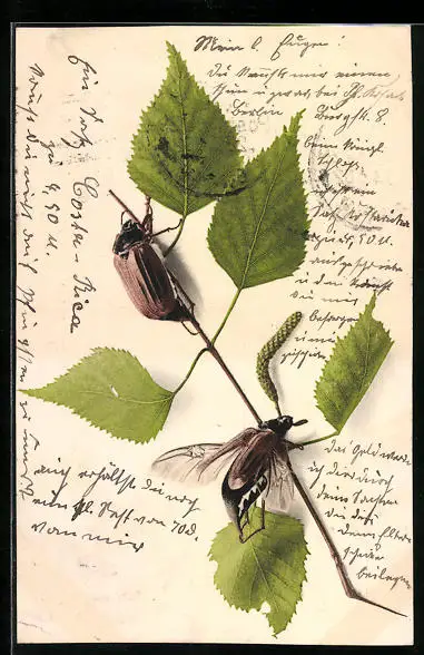 AK Zwei Maikäfer auf einem Birkenzweig