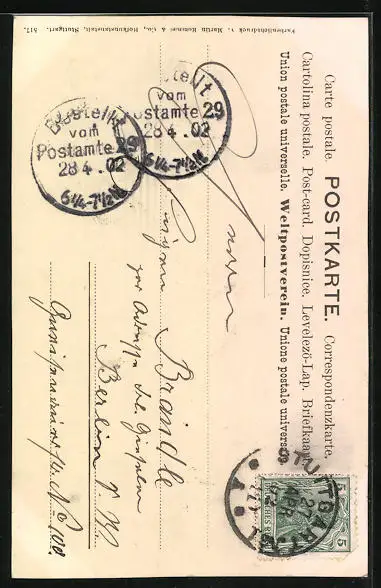 alte Ansichtskarte, gelaufen 1902, Stempelspur, guter Zustand