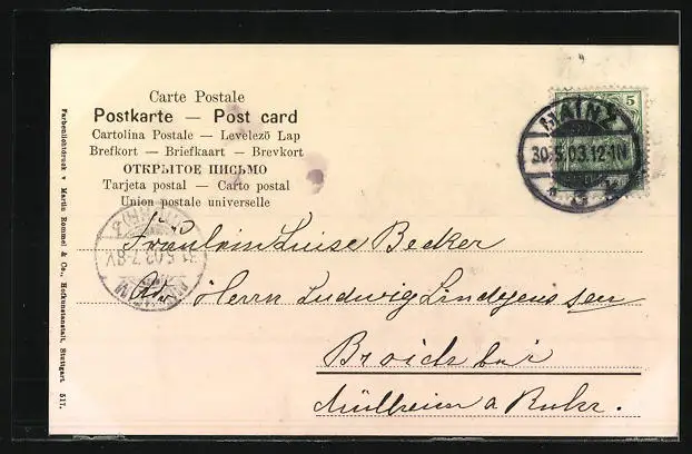 alte Ansichtskarte, gelaufen 1903, Stempelspur, guter Zustand