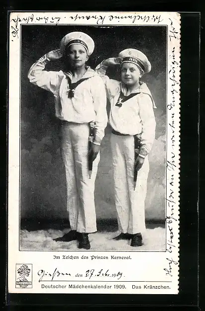 AK Zwei Matrosenjungen mit Dolch im Zeichen des Prinzen Karneval, 1909
