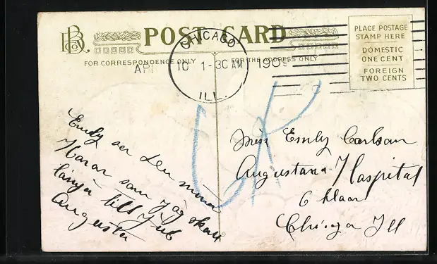 alte Ansichtskarte, gelaufen, Briefmarke entfernt, guter Zustand