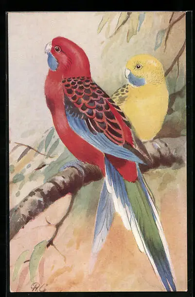AK Zwei Plattschwanzsittiche auf einem Ast