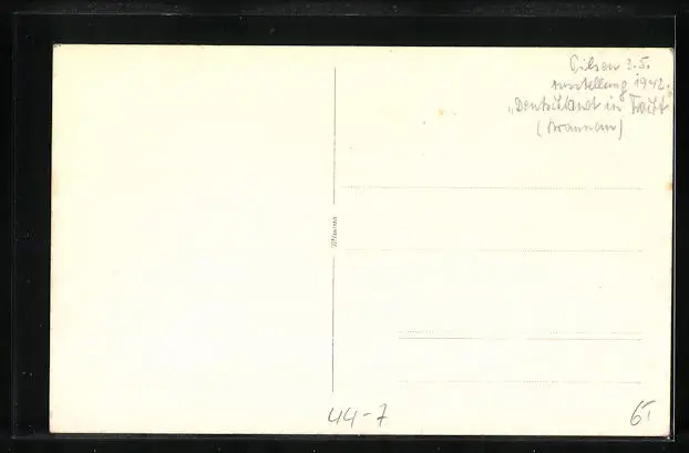 Personenbezogene Daten auf der Rückseite der Karte wurden durch blauen Textmarker unkenntlich gemacht. Die blauen Stellen sind auf die Vorderseite durchgeweicht und wirken sich negativ auf das Postkartenfoto aus