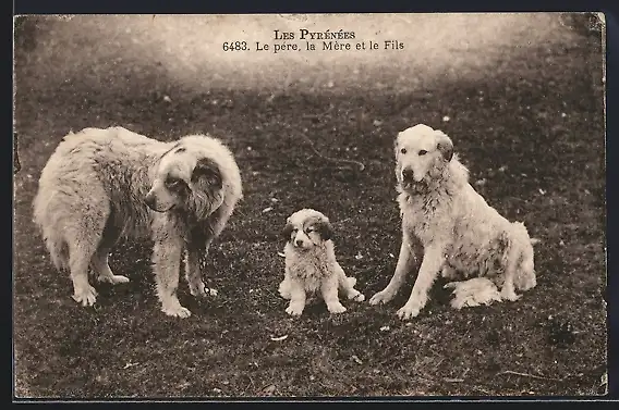AK Zwei Pyrenäenberghunde mit einem Welpen
