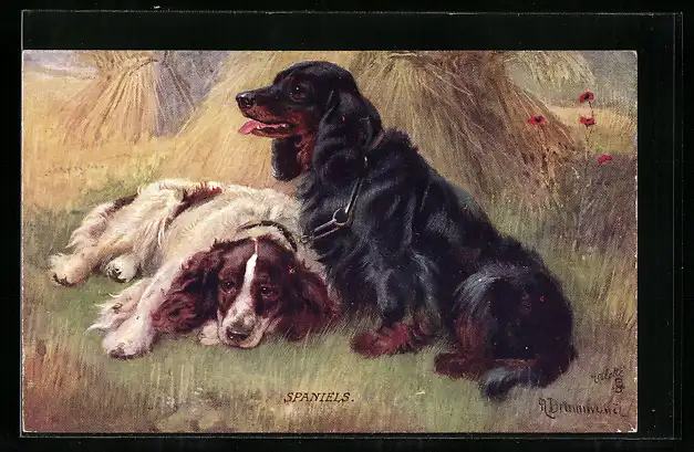 AK Zwei Spaniels an einem Kornfeld