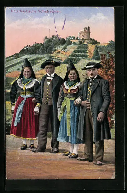AK Zwei ältere Paare in Unterfränkischer Volkstracht