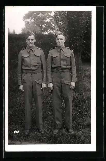 AK Zwei britische Soldaten in Uniform an einem Baum