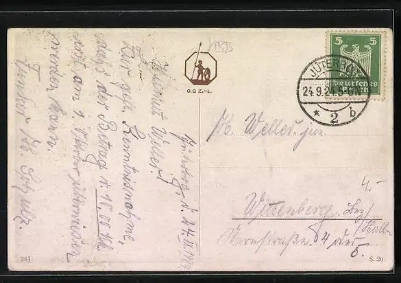 alte Ansichtskarte, gelaufen 1924, Eckknick re. oben, guter Zustand