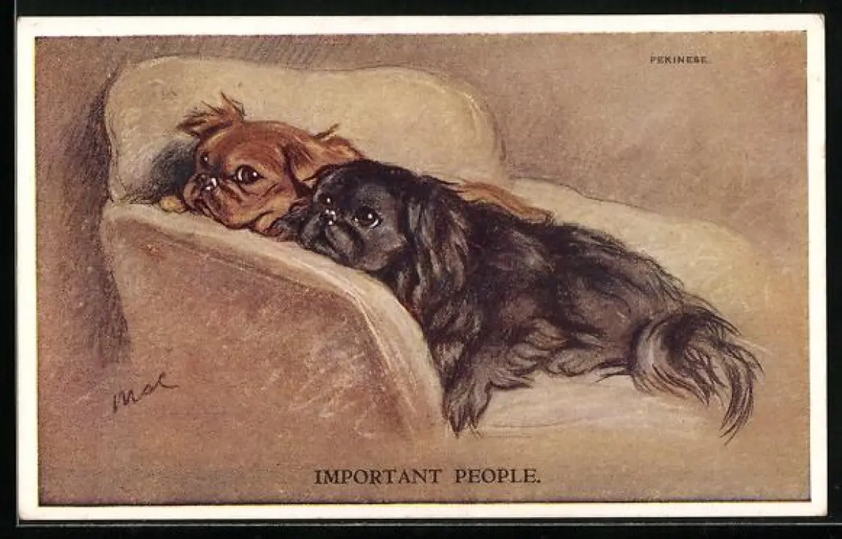 AK Zwei entspannte Pekinesen auf einem Sessel
